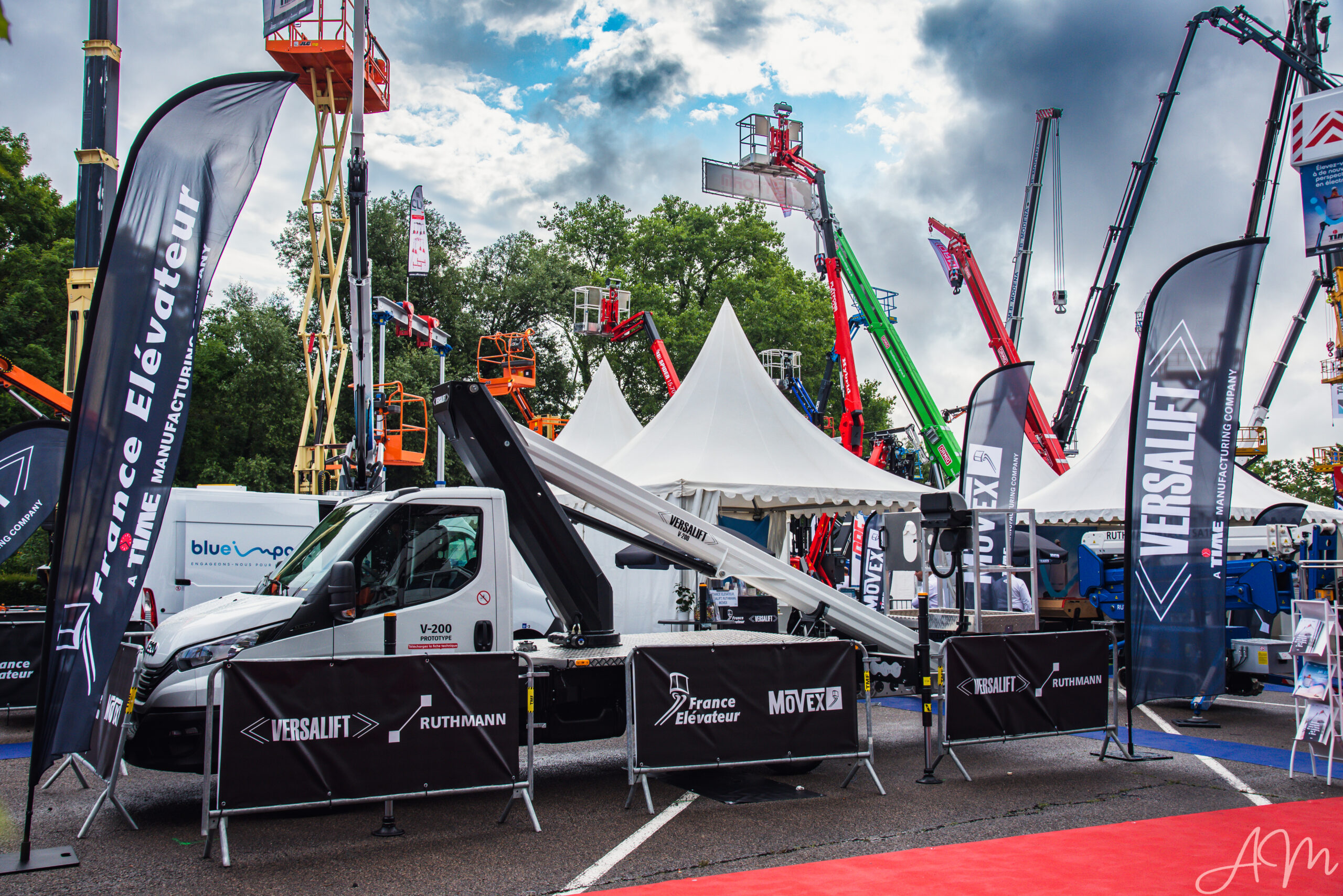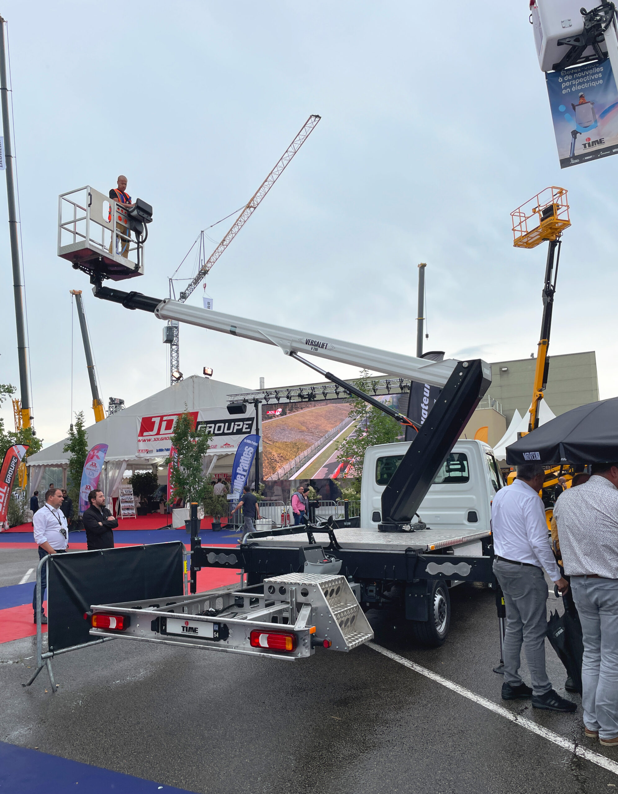 We also exhibited 6 of our carrier-mounted aerial work platforms: our new e-UPTO 15 on Master e-Tech and the new e-TOPY 11 on Ford e-Transit, an ATL 15 on Ford Ranger and TLH 16 on Renault Master from Movex, a T 700 Ruthmann and finally the new V-200 from Versalift. At the same time, a Bluelift spider lift was on show: the SA 18 Hybrid
