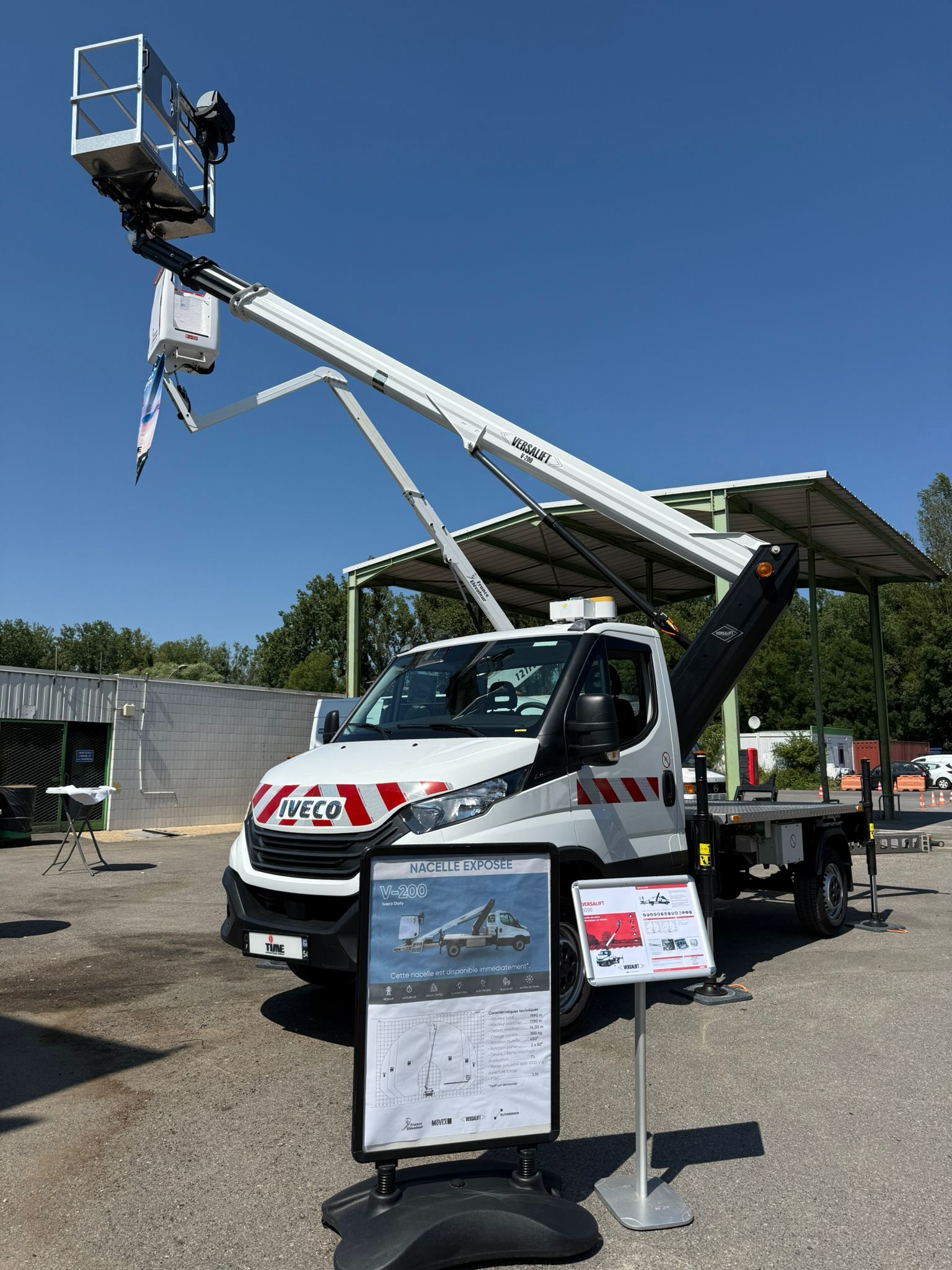 • V200 : Articulée sur utilitaire léger, elle offre 20 m de hauteur. Parfaite pour l’éclairage public et la maintenance de réseaux.